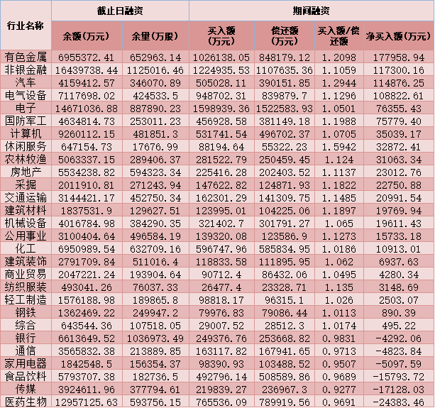 六、截至1月21日申萬一級行業(yè)兩融交易情況