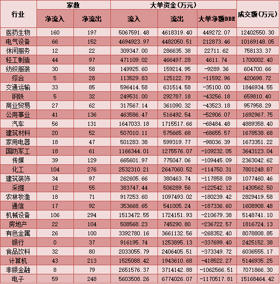 二、周五(1月22日)申萬一級行業(yè)大單資金流向