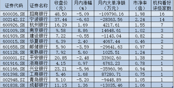 表:機(jī)構(gòu)推薦的銀行股市場表現(xiàn)一覽