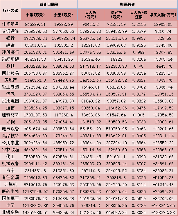 六、3月9日申萬一級行業(yè)兩融交易情況