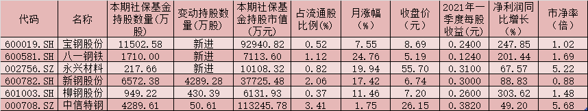 表:今年一季度獲社?;鹦逻M(jìn)增持的鋼鐵股一覽