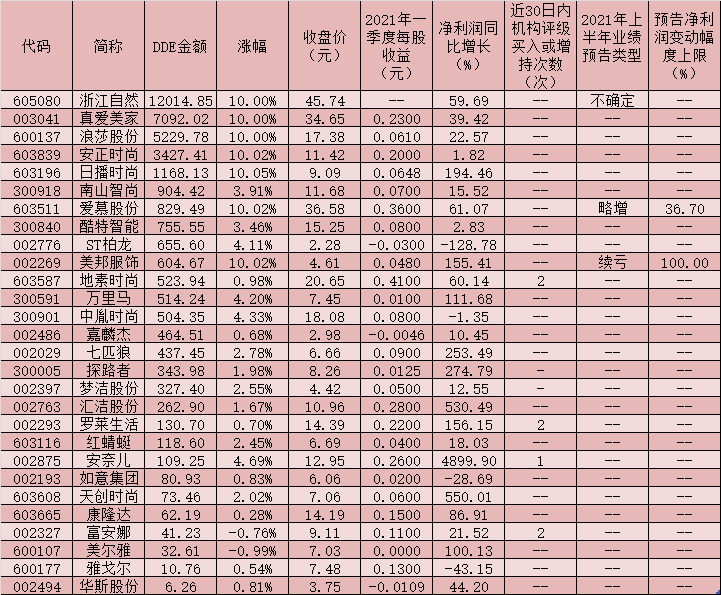表:6月2日實(shí)現(xiàn)大單資金凈流入的紡織服裝股