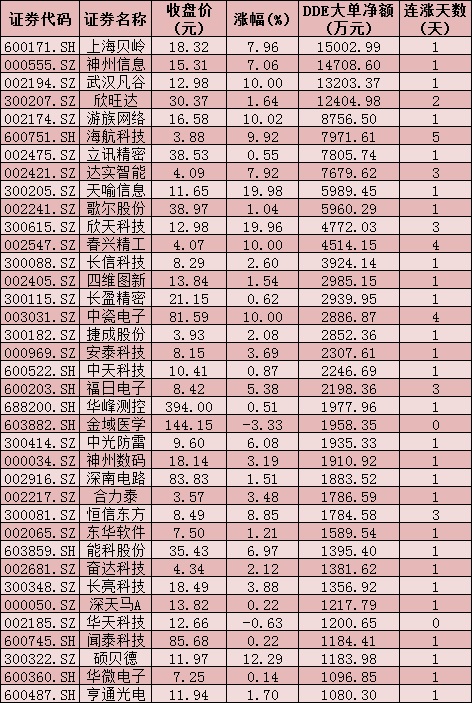 表:6月3日資金凈流入超1000萬元的華為概念股情況: