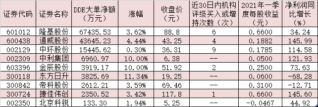 表:6月29日實(shí)現(xiàn)大單資金追捧的HIT電池概念股