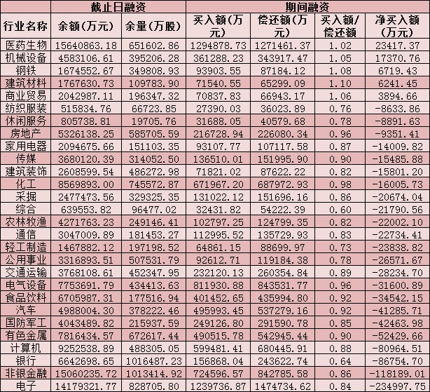 六、截至7月1日申萬(wàn)一級(jí)行業(yè)兩融交易情況