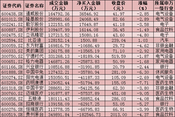 四、周五(7月2日)滬、深股通前十大成交活躍股交易情況
