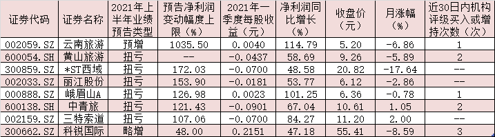 表:已披露上半年業(yè)績(jī)預(yù)告且預(yù)喜的旅游股一覽