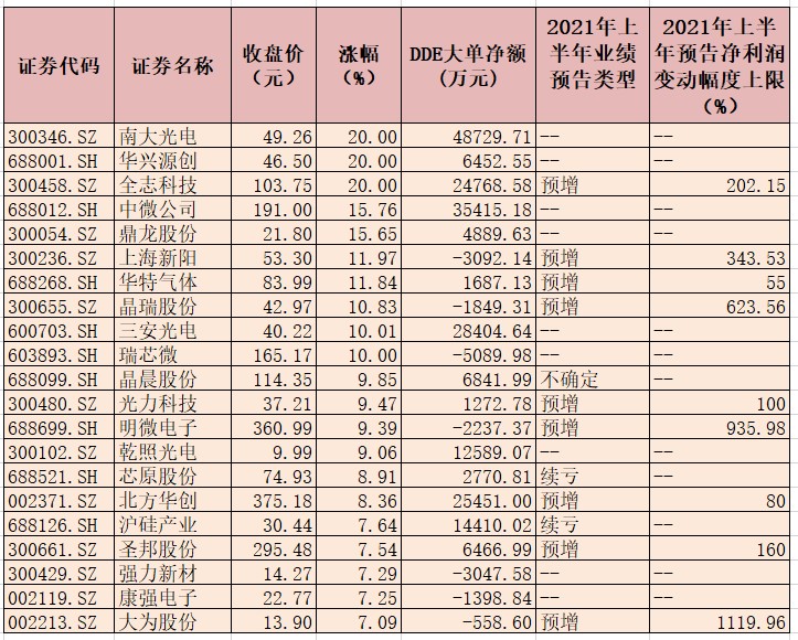表:7月22日漲幅超7%的集成電路概念股一覽