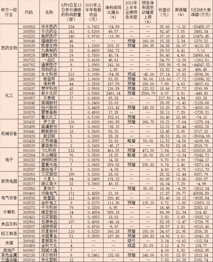 可以看到,良好的業(yè)績(jī)表現(xiàn)是吸引機(jī)構(gòu)頻繁調(diào)研的重要支撐。在上述本周被機(jī)構(gòu)調(diào)研的50家公司中,截至目前,已有44家公司披露了2021年上半年業(yè)績(jī),報(bào)告期內(nèi)實(shí)現(xiàn)凈利潤同比增長的公司共有36家。其中,包括新鄉(xiāng)化纖、維宏股份、TCL科技、新雷能、雷曼光電、九典制藥等在內(nèi)的18家公司2021年上半年凈利潤均實(shí)現(xiàn)同比翻番。