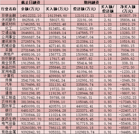 六、截至8月18日申萬一級行業(yè)兩融交易情況