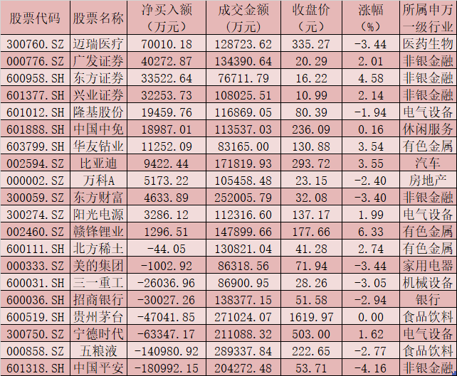 值得關(guān)注的是,周四,北向資金凈賣出107.83億元,其中,滬股通凈賣出額達59.94億元,深股通資金凈賣出額達47.89億元。