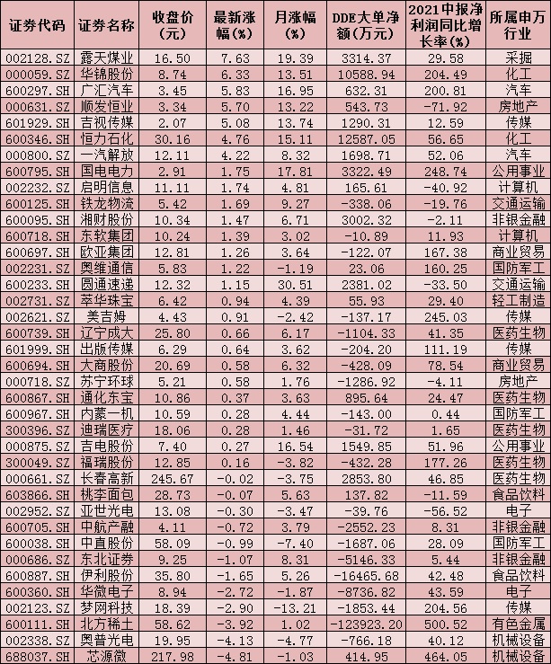 值得關(guān)注的是,東北振興概念股的業(yè)績普遍較好。統(tǒng)計發(fā)現(xiàn),在38只東北振興概念股中,今年上半年凈利潤同比實(shí)現(xiàn)增長的公司達(dá)30家,占比近八成。其中,北方稀土、芯源微、國電電力、美吉姆、夢網(wǎng)科技、華錦股份、廣匯汽車、福瑞股份、歐亞集團(tuán)、奧維通信、出版?zhèn)髅降?1家公司,上半年凈利潤同比增幅均超100%。