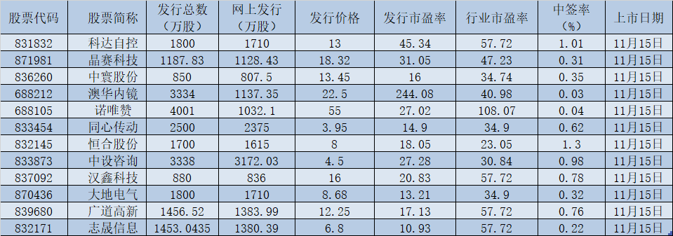 表:下周(11月15日-11月19日)新股申購(gòu)情況: