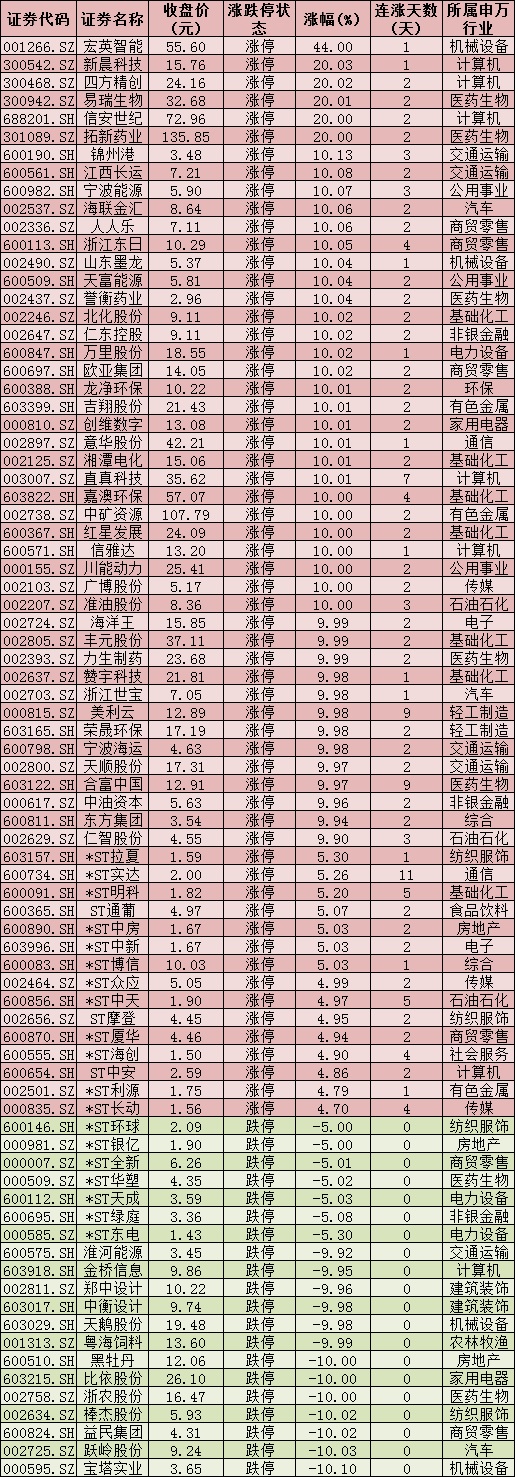 具體來看,中俄貿易概念板塊領漲,錦州港、浙江東日等5只個股集體漲停;數(shù)字貨幣、微信小程序、CIPS概念、數(shù)據(jù)安全、小金屬等板塊表現(xiàn)活躍;廚衛(wèi)電器板塊領跌,老板電器跌超6%;裝配式建筑、工業(yè)母機、房地產服務等板塊跌幅居前。