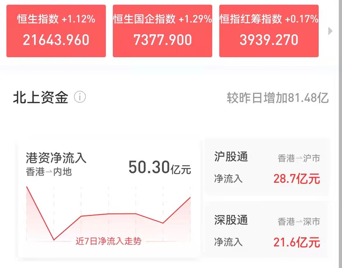 值得關(guān)注的是,中國香港股市有所反彈,恒生指數(shù)漲幅達1.12%,恒生國企指數(shù)漲幅達1.29%。