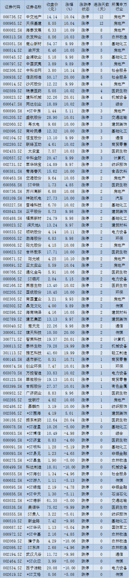周四(3月31日)漲停個股情況: