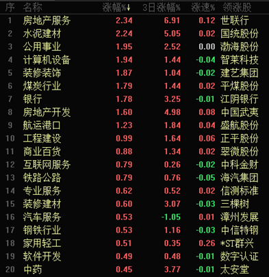 板塊方面,東方財富86類行業(yè)有29類上漲,房地產(chǎn)服務(wù)與水泥建材等2類行業(yè)居前,漲幅均超2%。