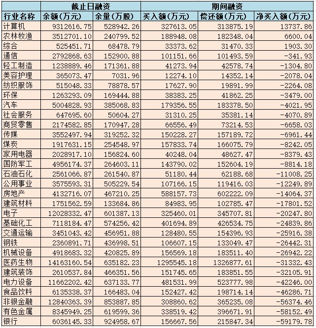 表:3月31日申萬(wàn)一級(jí)行業(yè)兩融交易情況: