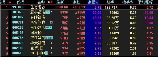 熱點一:住宿餐飲板塊飆升近7%君亭酒店20CM漲停