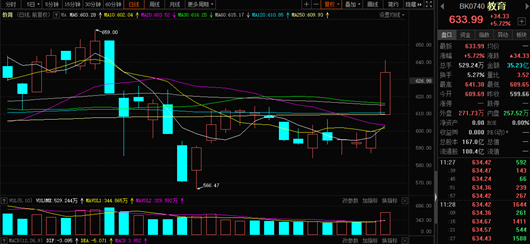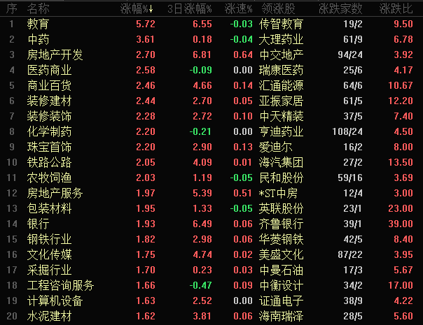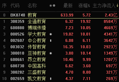 截至午間收盤,教育行業(yè)領漲,漲幅達5.72%,板塊中有5只個股漲停。