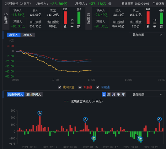 從資金面來看,4月6日上午,北向資金凈賣出金額達38.96億元。兩融資金方面,截至4月1日,滬深兩市兩融余額為16605.52億元,較前一交易日減少122.87億元。