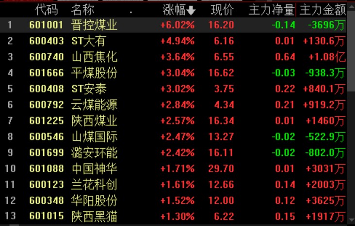 煤炭開采板塊盤中震蕩走強(qiáng),板塊內(nèi)多數(shù)個(gè)股實(shí)現(xiàn)上漲,晉控煤業(yè)領(lǐng)漲。
