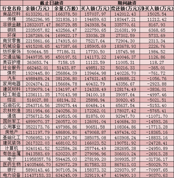 表:4月8日申萬一級行業(yè)兩融交易情況:
