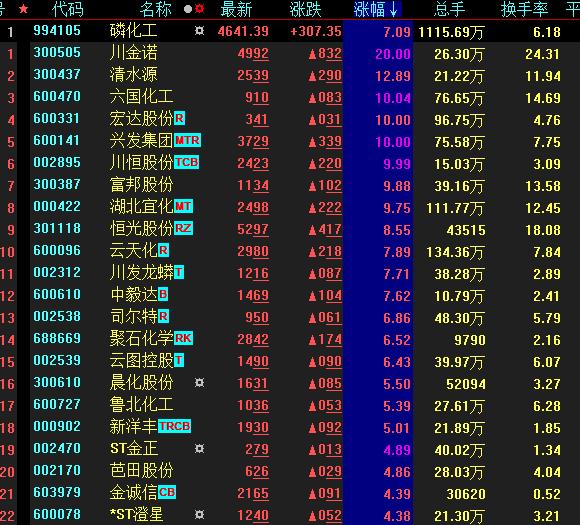 熱點板塊方面,截至4月8日收盤,磷化工、化肥、草甘膦等相關(guān)化工行業(yè)的細(xì)分板塊漲幅居前,均超3%。