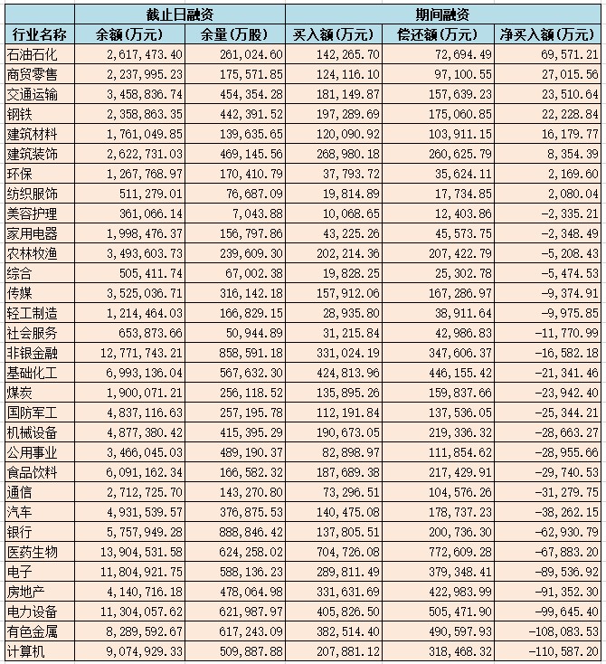 表:4月11日申萬一級行業(yè)兩融交易情況: