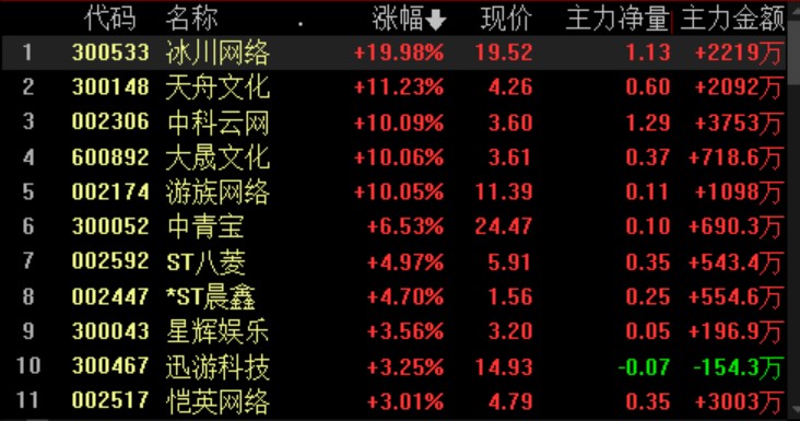 網(wǎng)絡(luò)游戲板塊表現(xiàn)強勢