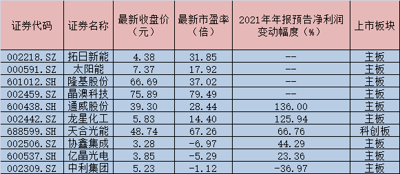 圖為:部分太陽能電池個股市場面一覽 制表:徐一鳴