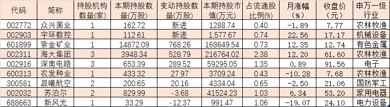 與2021年四季度末相比,QFII新進增持7只個股,今年一季度QFII新進持有眾興菌業(yè)、宇環(huán)數控等2只個股,QFII持股數量分別為162.72萬股、112.61萬股。另外,紫金礦業(yè)、海大集團、深南電路、農發(fā)種業(yè)、晨曦航空等5只個股今年一季度贏得QFII繼續(xù)加倉。
