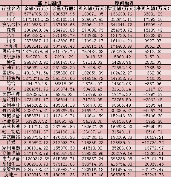 表:4月14日申萬(wàn)一級(jí)行業(yè)兩融交易情況:
