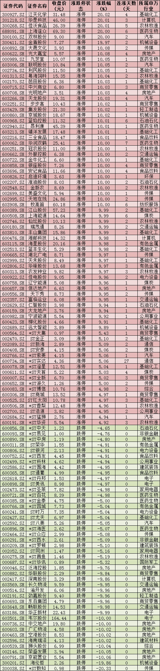個(gè)股方面,周二,A股市場(chǎng)漲多跌少,共有2685只個(gè)股實(shí)現(xiàn)上漲,1870只個(gè)股下跌。其中,有74只個(gè)股報(bào)收于漲停板,跌停個(gè)股有44只。從所屬行業(yè)來(lái)看,漲停個(gè)股主要集中在化工、農(nóng)林牧漁、傳媒、商貿(mào)零售、醫(yī)藥生物等行業(yè)。