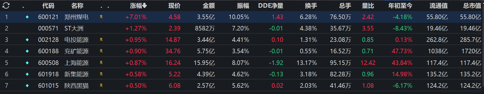 受此利好消息提振,4月21日早盤,同花順煤炭板塊呈現(xiàn)高開態(tài)勢,盤中一度漲幅高達1.88%左右。截至中午收盤,或受大盤拖累,板塊下跌1.28%。不過,部分個股仍呈現(xiàn)上漲態(tài)勢,鄭州煤電漲幅居首,達7.01%,ST大洲上漲1.27%。