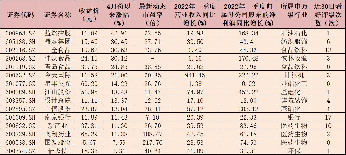 表:4月份以來漲幅超7%的業(yè)績雙增長股一覽