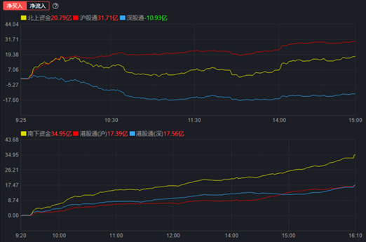 北向資金今日呈凈流入態(tài)勢(shì),全天凈買入20.79億元,其中,滬股通凈買入31.71億元,深股通凈賣出-10.93億元。