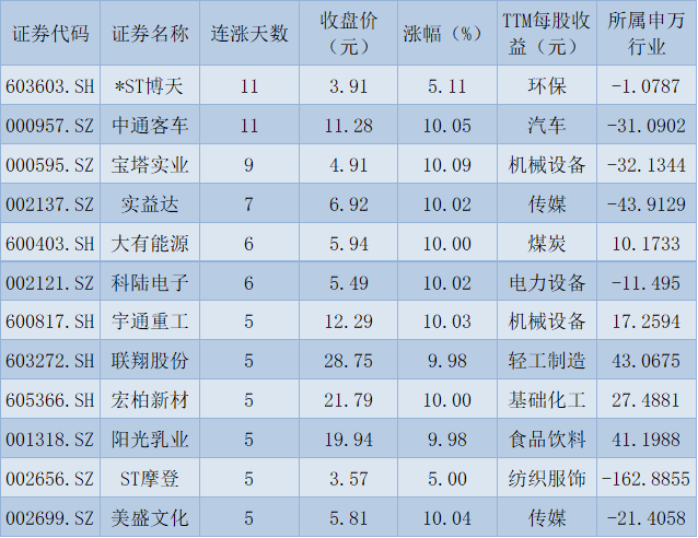 表:連續(xù)上漲5天且今日收盤漲停股一覽