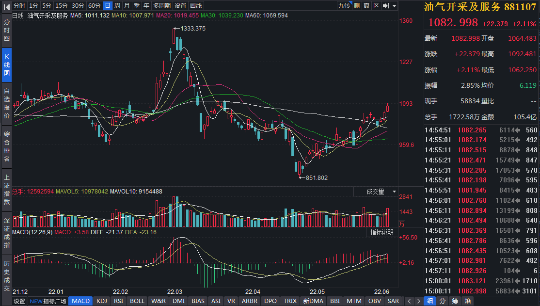 受近期油價持續(xù)上行影響,6月8日,A股同花順油氣開采及服務和煤化工板塊表現(xiàn)不俗,截至收盤,油氣開采及服務板塊指數(shù)漲2.11%,煤化工板塊漲1.82%,均大幅跑贏上證指數(shù)(漲幅0.68%)。