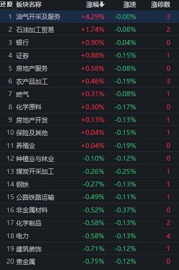 近期召開的“中國這十年”系列主題新聞發(fā)布會上,科技部部長數(shù)次提到“超超臨界高效發(fā)電技術(shù)”。“超超臨界發(fā)電”概念股引發(fā)市場關(guān)注,今日再度走強。同花順行業(yè)方面,截至6月9日11:30,76類行業(yè)中有11類行業(yè)上漲,占比14.47%。油氣開采及服務(wù)行業(yè)居漲幅榜首,漲幅達4.29%,石油加工貿(mào)易行業(yè)漲幅也達1.74%;跌幅居首的行業(yè)是汽車整車,下跌4.07%,此外,酒店及餐飲行業(yè)跌幅也達3.51%。