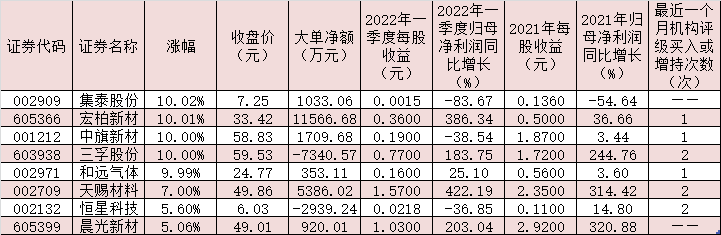表:6月13日漲幅超過5%的有機硅概念股一覽