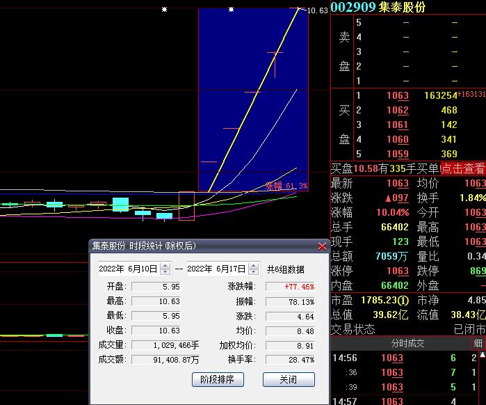 6月17日,集泰股份再度漲停,截至收盤(pán),報(bào)10.63元,總市值達(dá)39.62億元,連續(xù)6個(gè)交易日漲停,期間累計(jì)漲幅達(dá)77.46%。