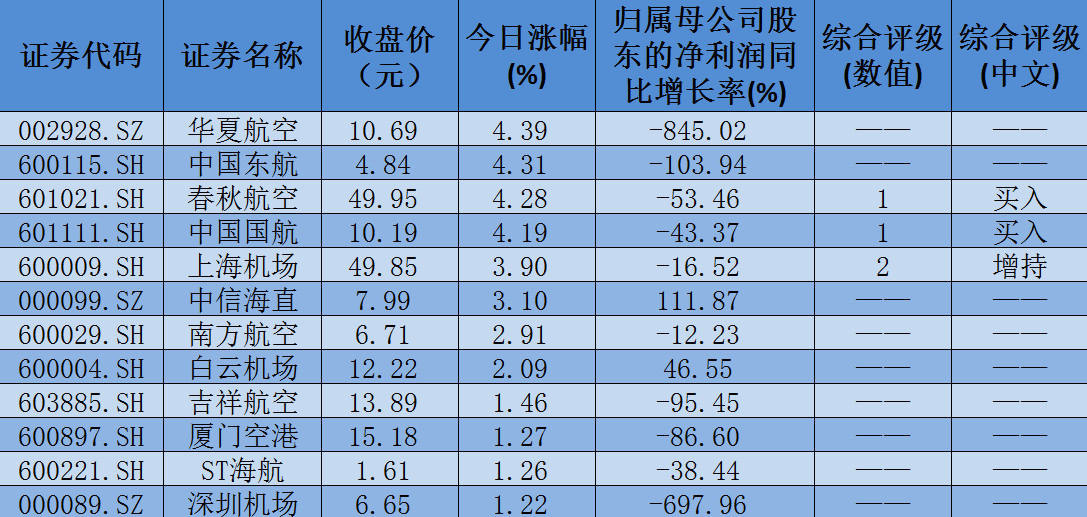 受國際油價下行影響,截至今日15:00收盤,A股申萬二級航空機場板塊上漲3.13%,大幅跑贏上證指數(shù)(漲幅-0.04%)。板塊內(nèi)12只個股全部實現(xiàn)上漲。個股方面,華夏航空、中國東航、春秋航空、中國國航等4只個股漲幅均超4%。