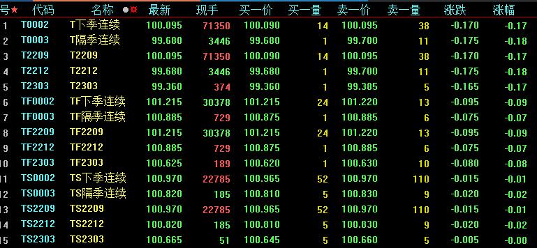 周五,國(guó)債期貨全線收跌,10年期主力合約跌0.17%,5年期主力合約跌0.09%,2年期主力合約跌0.01%。全周來(lái)看,國(guó)債期貨全線小幅下跌,10年期主力合約累計(jì)跌0.30%,5年期主力合約跌0.18%,2年期主力合約跌0.04%。