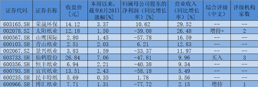 值得一提的是,最近30日內(nèi),太陽紙業(yè)、博匯紙業(yè)、仙鶴股份、岳陽林紙等4只紙漿概念股獲得了機構(gòu)給予的“買入”或“增持”等看好評級。