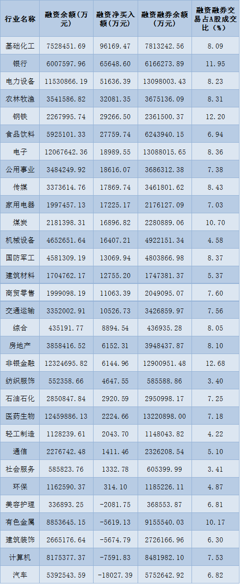 表:7月6日申萬一級行業(yè)兩融交易情況: