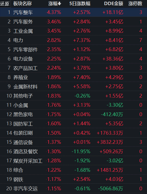 同花順行業(yè)方面,截至7月7日11:30,76類行業(yè)中有58類上漲,占比76.32%。汽車整車行業(yè)居漲幅榜首,漲幅達4.37%,此外,汽車服務(wù)和工業(yè)金屬行業(yè)漲幅也均超3%;跌幅居首的行業(yè)是服裝家紡,下跌1.37%。