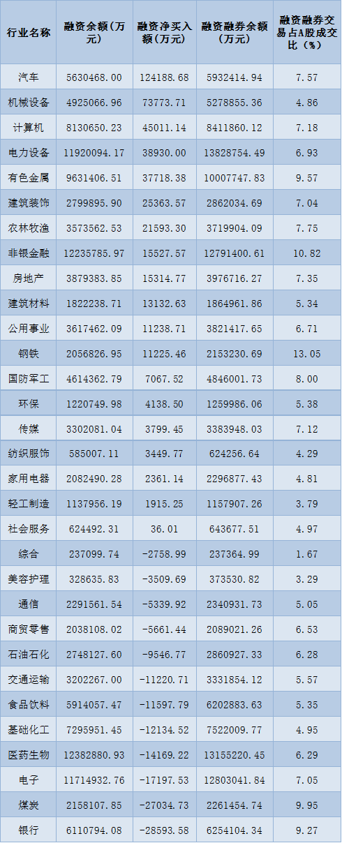 表:8月1日申萬一級行業(yè)兩融交易情況: