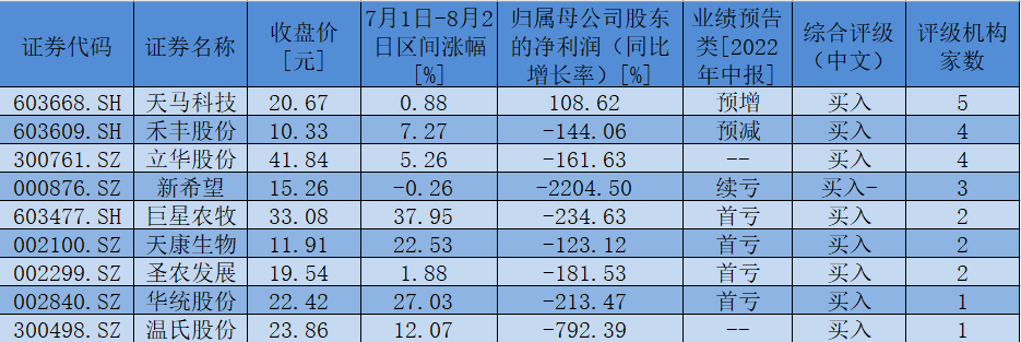 表:最近30日內(nèi),獲機(jī)構(gòu)給予“買(mǎi)入”或“增持”等看好評(píng)級(jí)的養(yǎng)雞股一覽