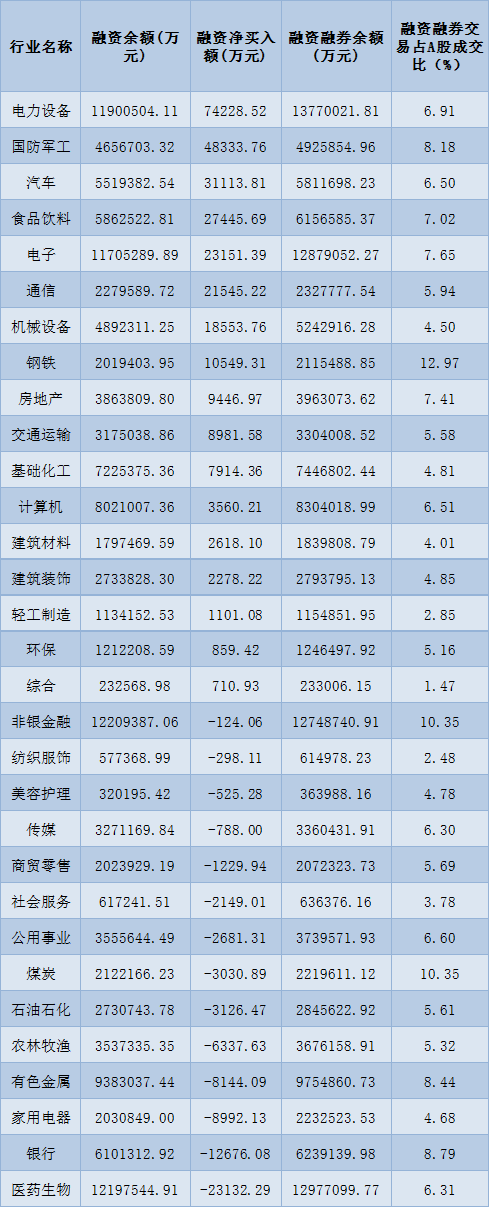 表:8月4日申萬一級行業(yè)兩融交易情況: